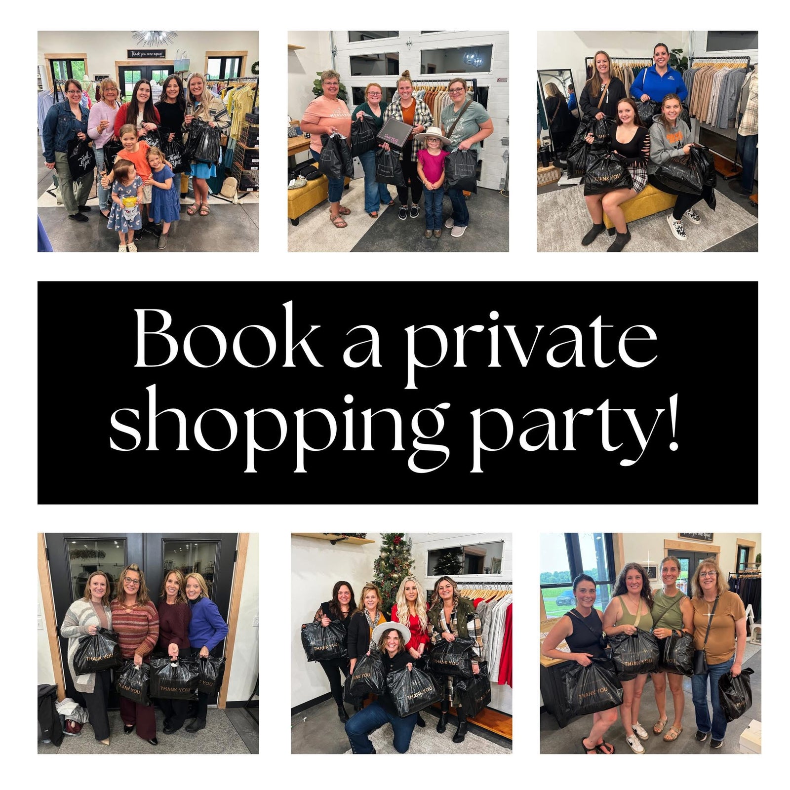 Grab your besties and get the entire boutique to yourselves for 2-3 hours of styling, sips, and private shopping!