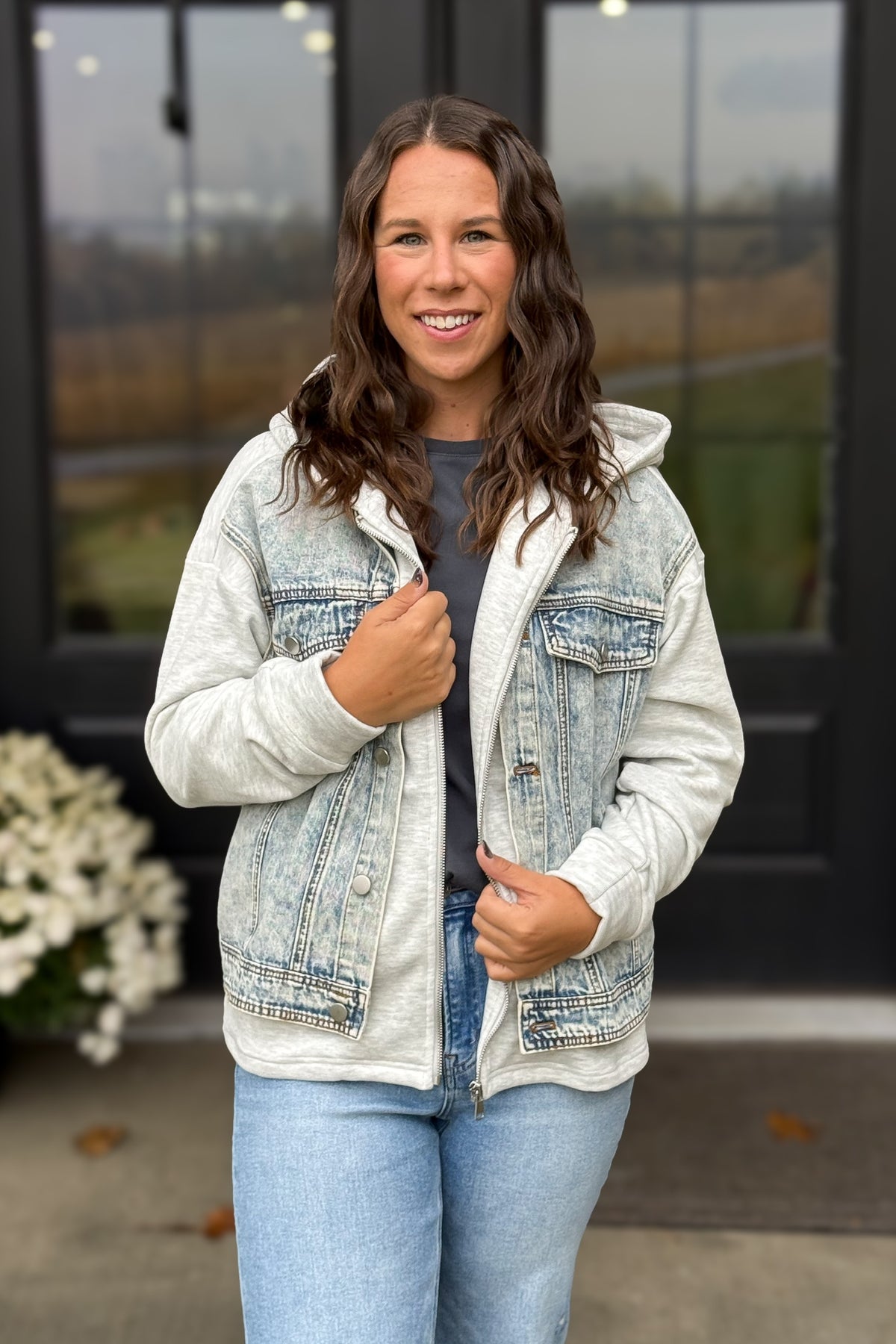 This Denim Hoodie Jacket combines the comfort of a sweatshirt with the rugged appeal of denim. Featuring a zippered closure and a hood, it offers practical warmth and easy layering. The denim-look front adds a stylish edge, making it a versatile piece for casual and smart-casual outfits. Ideal for transitional weather, this jacket balances functionality with contemporary design.